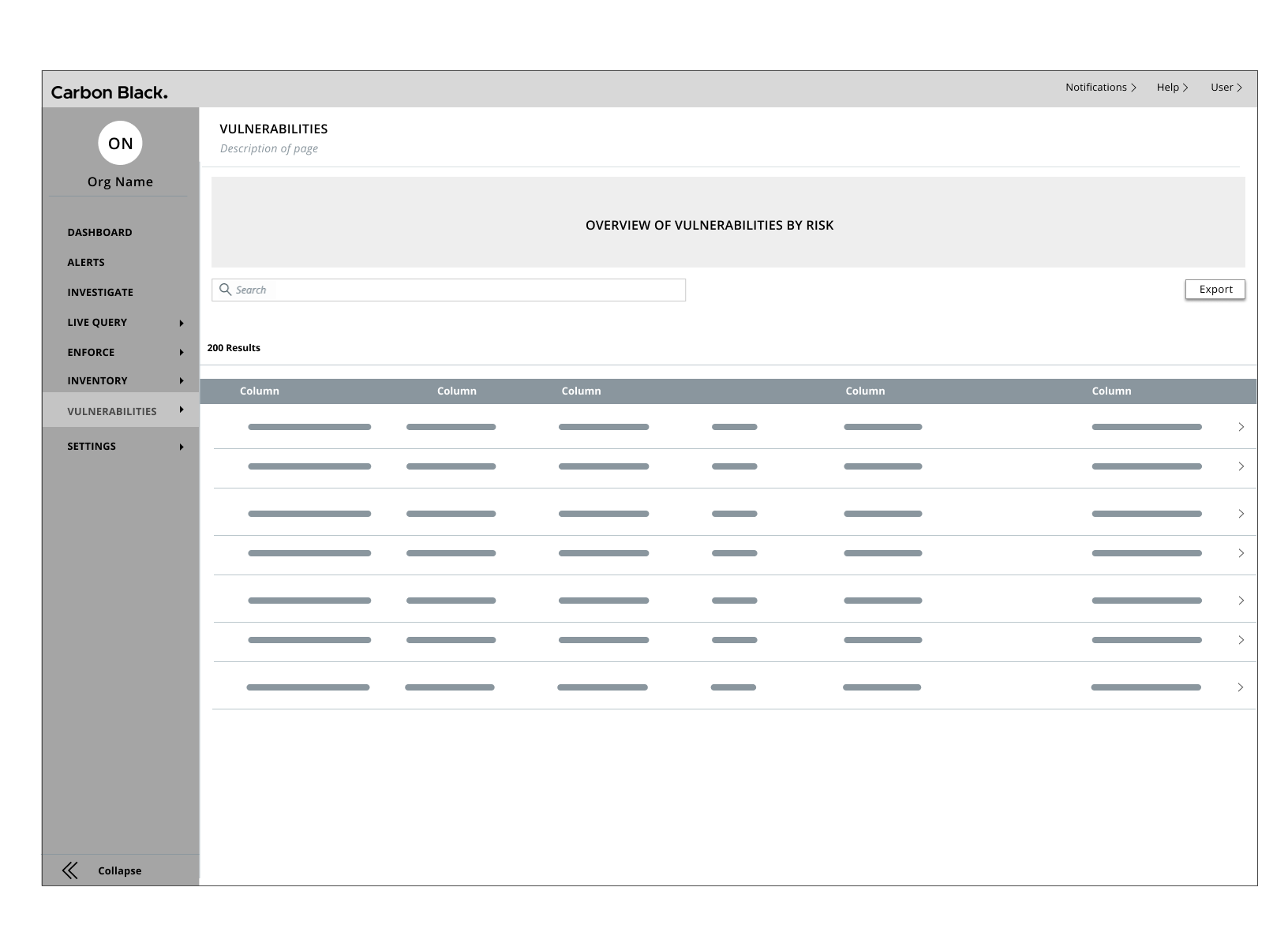 Role: My goal was to design the end-to-end experience of a Vulnerability Management solution for Security Operations teams using Carbon Black to secure their workloads and endpoints.